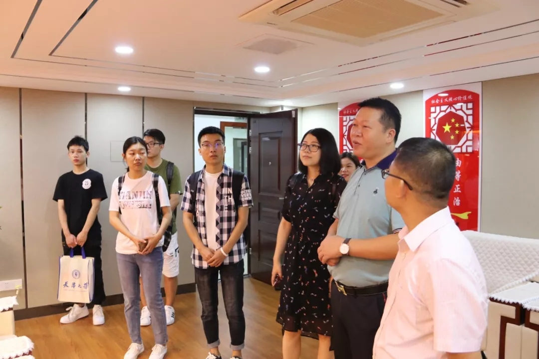 2019年7月15日,天津大學管理與經(jīng)濟學部暑期實踐隊一行在廣西校友會執(zhí)行秘書長蘇吉的帶領下,深入華業(yè)集團考察交流。集團副總經(jīng)理莫驊,辦公室、人力資源部等部門負責人全程陪同。
