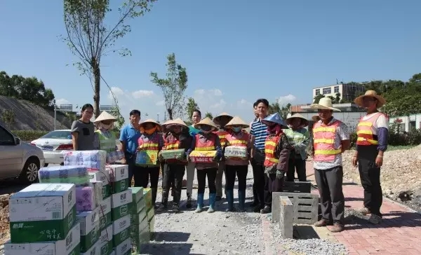 防城港的夏天持續(xù)高溫,熱氣襲人,但為了保證施工進(jìn)度,公司項目部員工不畏困難,戰(zhàn)高溫、斗酷暑,依舊堅守崗位。頂著高溫奮斗在一線崗位的員工牽動著公司領(lǐng)導(dǎo)的心,7月25日下午,在防城區(qū)總工會的支持下,受集團(tuán)公司龍其偉總裁和龍其生董事長的委托,集團(tuán)副總裁唐光源、工會主席鐘麗霞、副總經(jīng)理龐樹玉一行前往防城港市東灣綠化工程施工現(xiàn)場看望奮戰(zhàn)在高溫一線的項目部員工,為他們送去了夏季防暑物品,為員工們帶來了絲絲“清涼”。