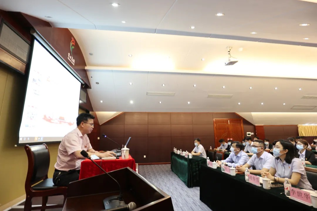 為推動黨史學習教育往深里走、往心里走、往實里走,教育引導黨員干部群眾了解黨的光輝歷史、感悟黨的初心使命、領(lǐng)會黨的創(chuàng)新理論、體認黨的精神譜系、傳承黨的紅色基因,更加自覺地以習近平新時代中國特色社會主義思想武裝頭腦,2021年4月30日,防城區(qū)委黨史學習教育宣講團走進廣西華業(yè)集團開展黨史學習教育宣講會,宣講團成員、區(qū)審計局黨組成員、副局長黃德益同志做了《百年初心》的專題主講。華業(yè)集團黨委副書記、副總裁廖人興,集團副總裁熊昭斐和黨員、職工代表四十多人參加了宣講會。