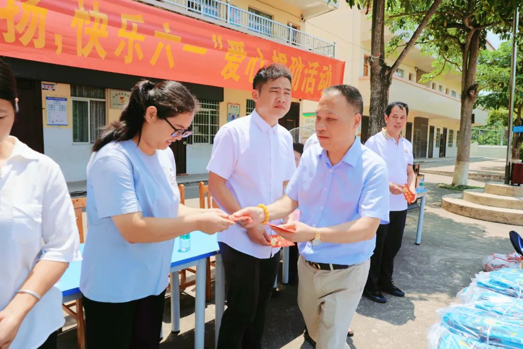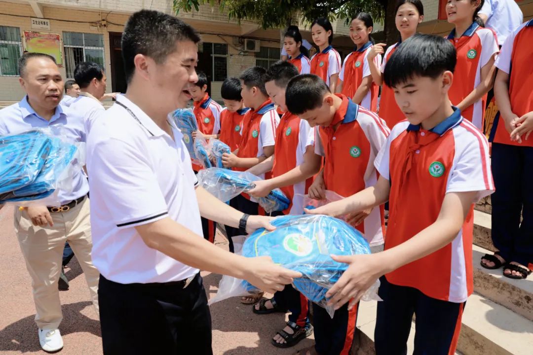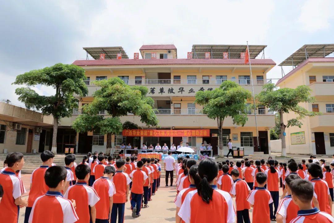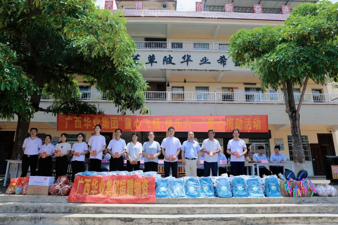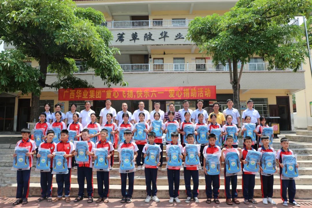 5月29日,廣西華業(yè)投資集團創(chuàng)始人、總裁龍其偉,董事長龍其生率集團副總裁廖人興、龐樹玉、熊昭斐,工會主席鐘麗霞,財務總監(jiān)李情及黨委副書記王孟軍等中高層管理人員、職工代表一行16人,驅車前往廣東廉江市高橋鎮(zhèn)蓆草陂華業(yè)希望小學,舉辦“童心飛揚,快樂六一”慰問捐贈活動。廣東廉江市高橋鎮(zhèn)黨委書記劉付劍輝、副鎮(zhèn)長陳燕銳,學校領導以及當地鄉(xiāng)賢代表出席了活動。