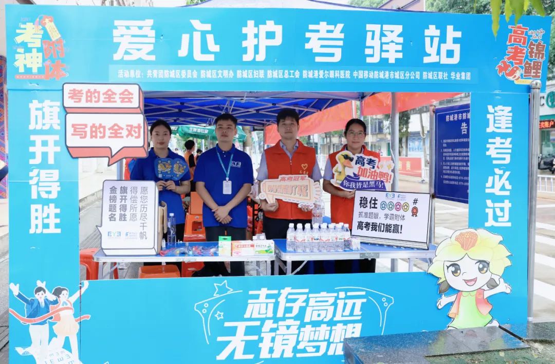 6月7日上午,華業(yè)集團工會主席鐘麗霞率公司員工前往防城區(qū)各個考點布置愛心護考驛站,為考生及家長免費提供飲用水、紙巾、文具包、應急藥品等為高考加油助力。