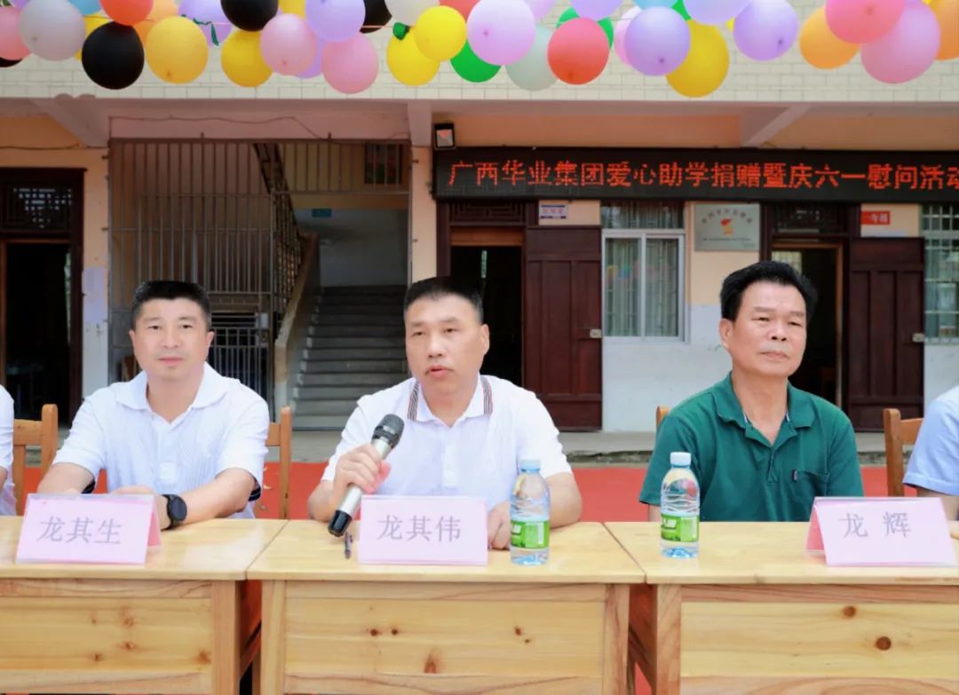 龍其偉總裁在活動儀式上致辭。他鼓勵同學們要從小樹立崇高志向,珍惜光陰,刻苦求學,立志成長為國家和社會的有用之才。他還表示華業(yè)集團將繼續(xù)關(guān)注家鄉(xiāng)教育事業(yè)的發(fā)展進步,堅持開展捐資助學等社會公益活動,為廣大師生創(chuàng)造良好的學習環(huán)境。