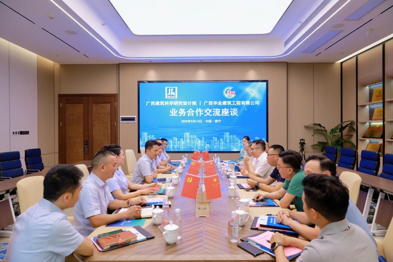 2025年5月13日下午,廣西壯族自治區(qū)建筑科學(xué)研究設(shè)計(jì)院(以下簡(jiǎn)稱“廣西建科院”)與廣西華業(yè)建筑工程有限公司(以下簡(jiǎn)稱“華業(yè)建筑”)在華業(yè)大廈舉行業(yè)務(wù)合作交流座談會(huì)。廣西建科院副院長(zhǎng)龐耀國(guó)、潘利,華業(yè)建筑總經(jīng)理龐樹(shù)玉等主要領(lǐng)導(dǎo)及核心業(yè)務(wù)負(fù)責(zé)人共15人出席會(huì)議,雙方圍繞建筑科研、工程檢測(cè)、設(shè)計(jì)施工、消防查驗(yàn)、項(xiàng)目投資等領(lǐng)域的深度合作展開(kāi)交流,共同擘畫(huà)合作發(fā)展新藍(lán)圖。